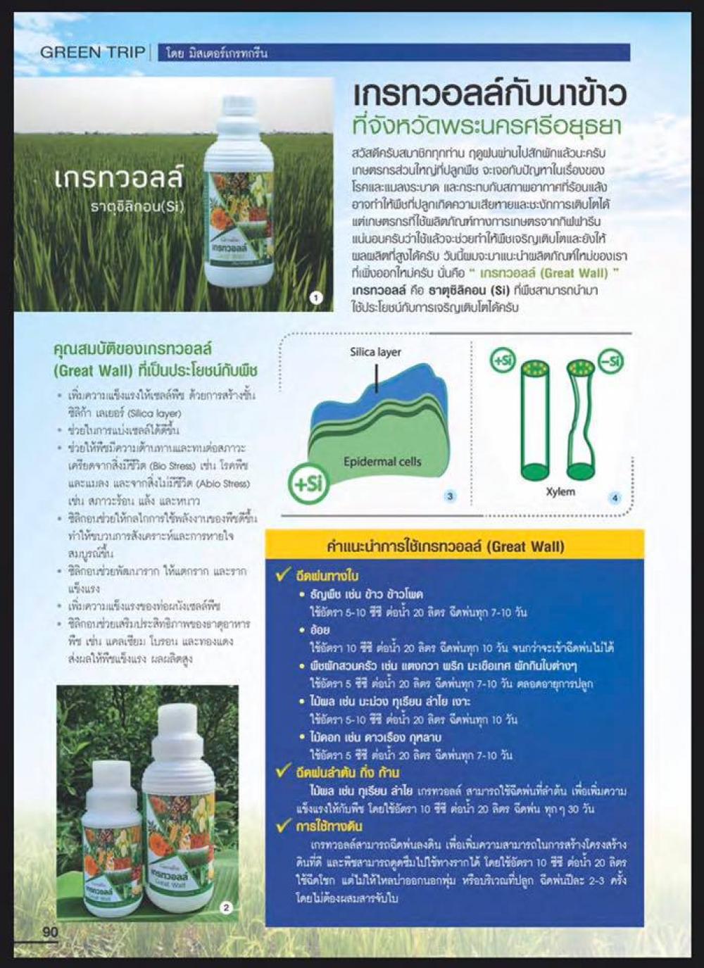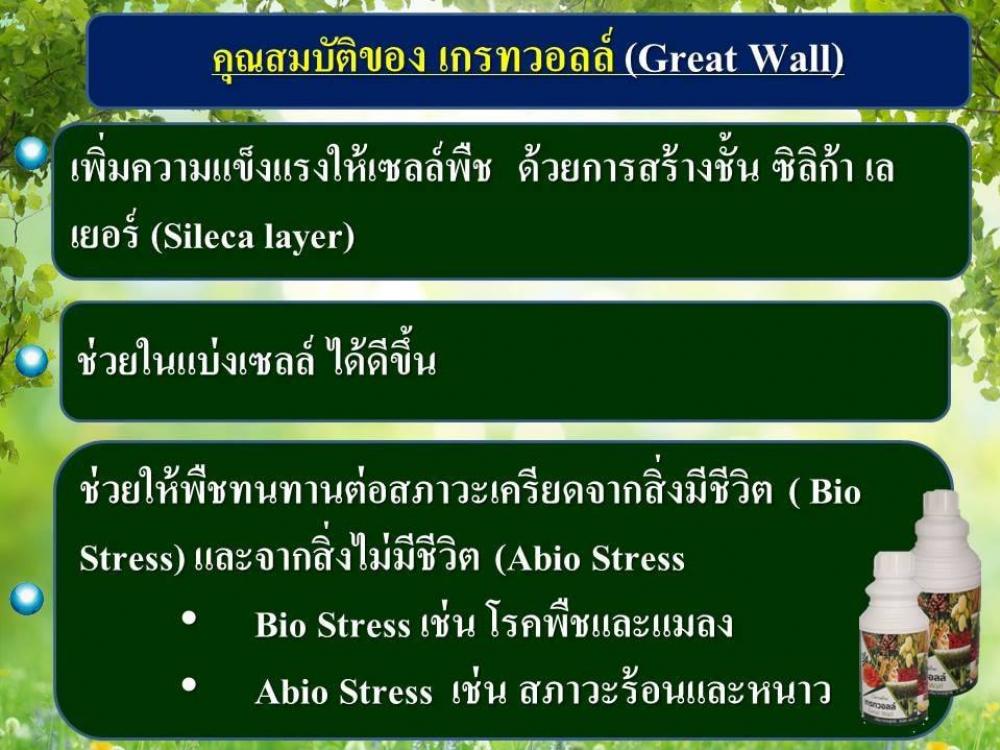 - เกรทวอลล์ เป็น ธาตุซิลิคอน ซึ่งอยู่ในรูปของซิลิคแอซิด (Silicic acid และ Poly silicic acid)