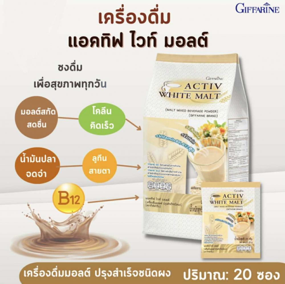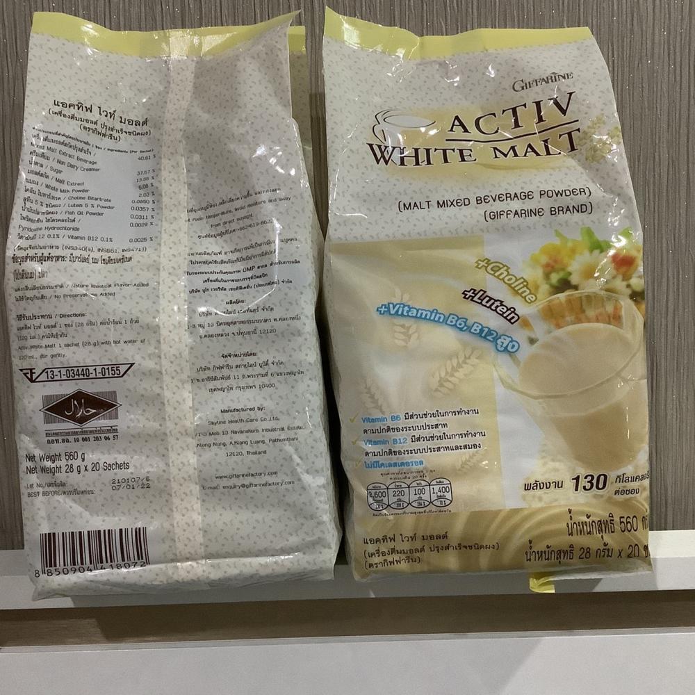 Giffarine Active White Malt : Instant Malt Drink Powder White Malt Flavor Mixed with Choline Fish Oil and Lutein (28 grams/20 packets)